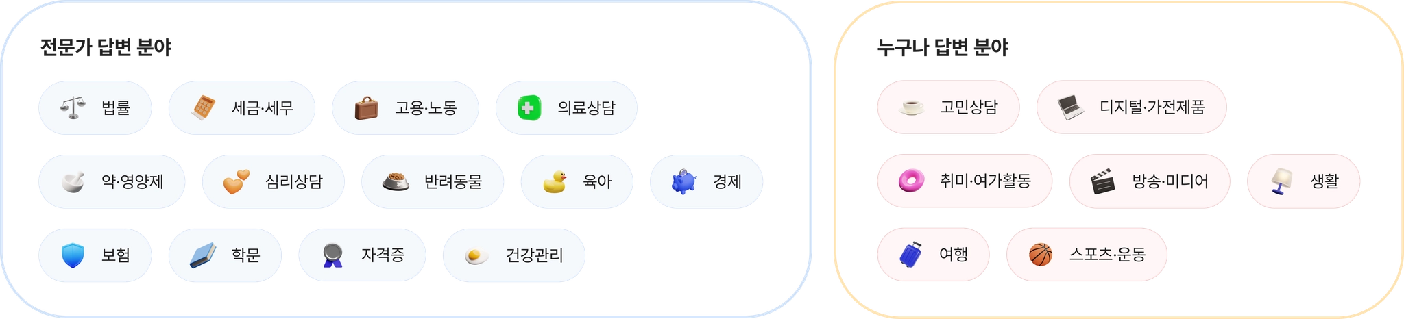전문가 분야: 누구나 질문할 수 있으나, 답변은 해당 전문가만 가능해요.