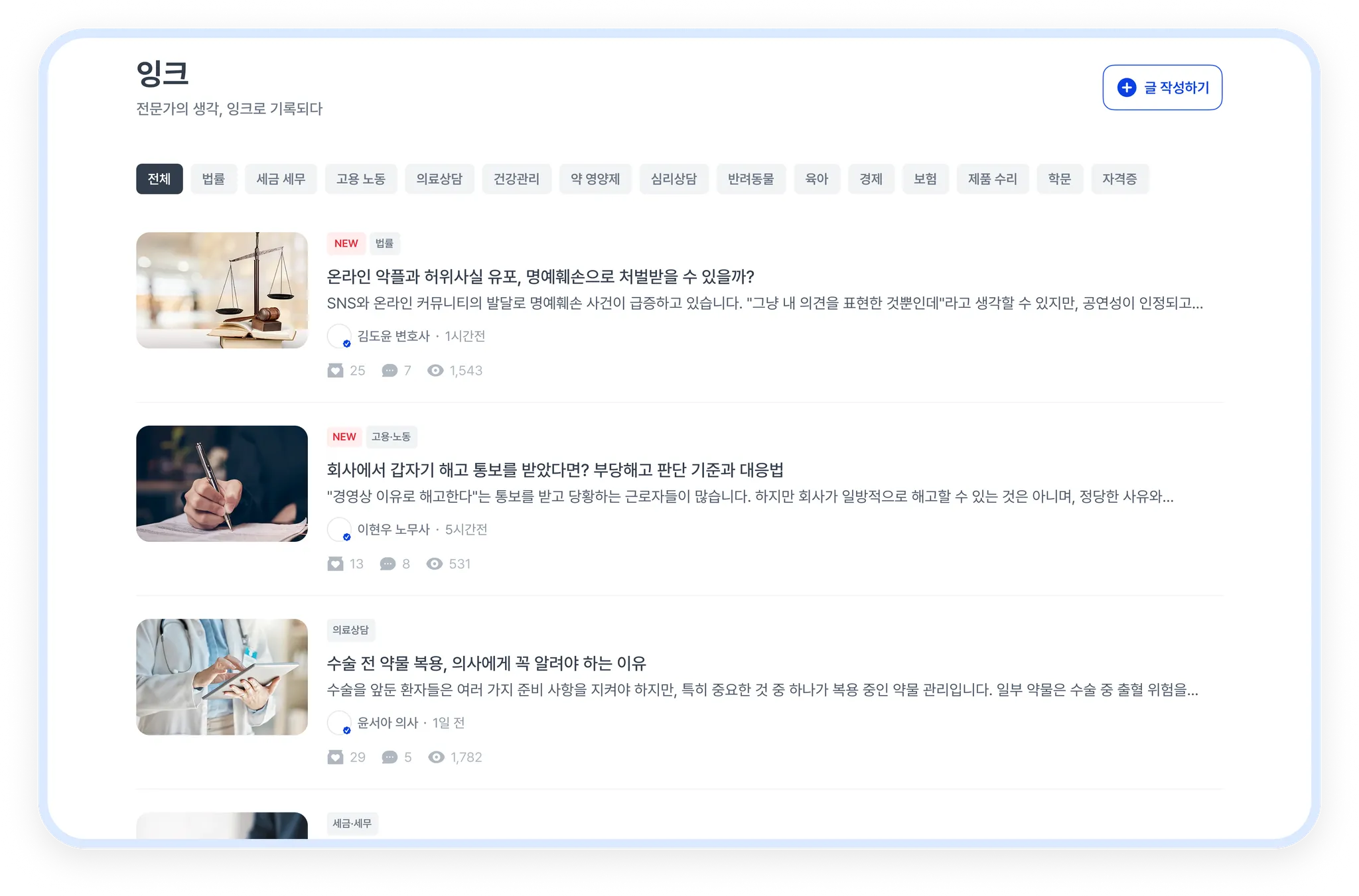 전문가님께서 현재 잉크를 업로드할 수 있는 분야를 확인할 수 있어요. 글을 업로드하고 싶은 분야를 선택해 주세요.
